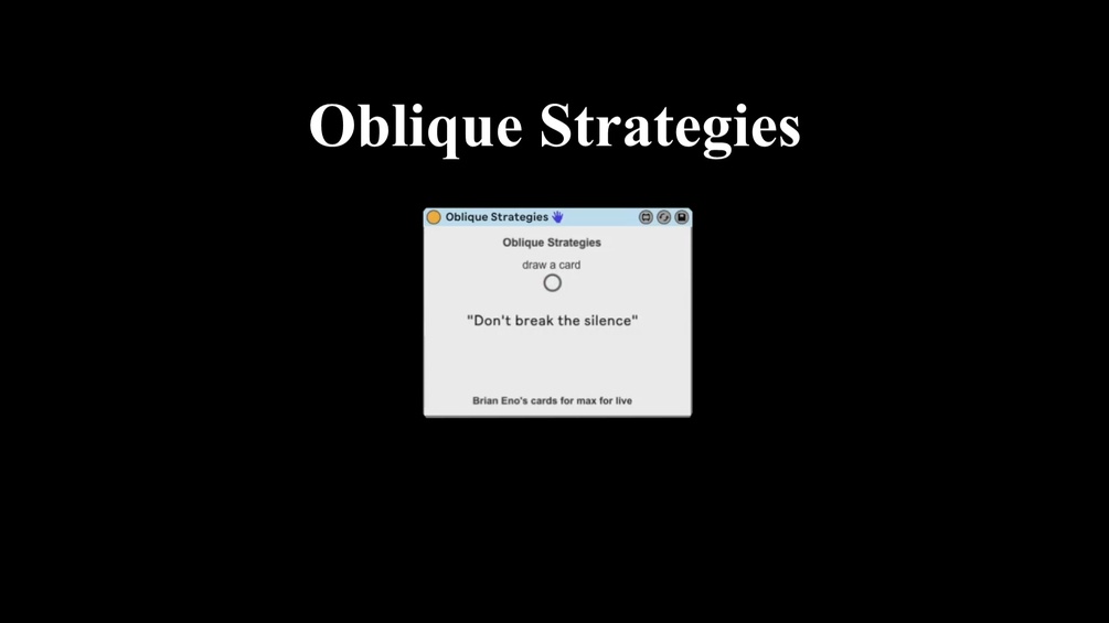 is originally a deck of printed cards created by Brian Eno and Peter Schmidt and first published in 1975.